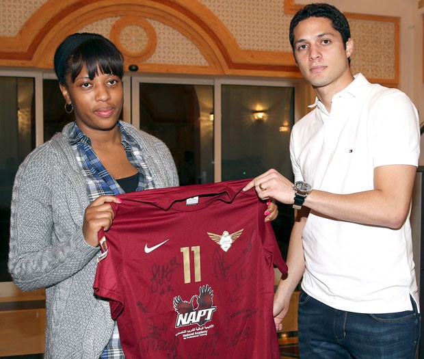 Zagueiro brasileiro que atua no Al Jaish passa a Liseth Chalá a camisa do ex-companheiro, morto na última segunda-feira